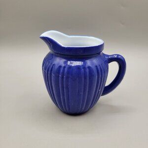 1940s Hazel Atlas Blue Platonite Glass Ribbed Creamer Pitcher Cased Glass