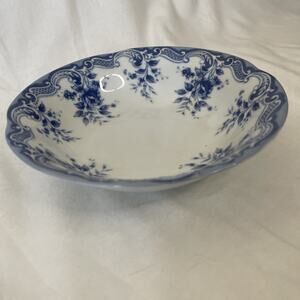 1940s Hoya China 7.5” Soup Bowl Blue Flowers Japan Porcelain Floral