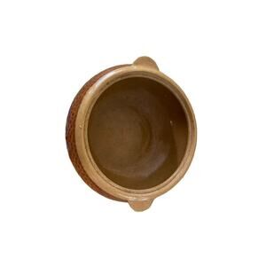 This vintage 1940s Kla-Ham'rd hammered bean soup pot is a unique addition to any kitchen. With a round shape and brown and cream color, it is perfect for serving soup or stews. The pot has a medium capacity and measures 5.75 inches in height and 8.5 inches in diameter.