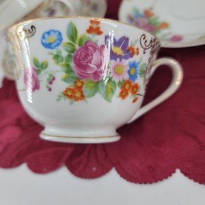 1940s Kongo China STS Hand Painted Tea Cups and Saucers Floral Lot of 4 Sets