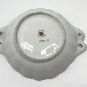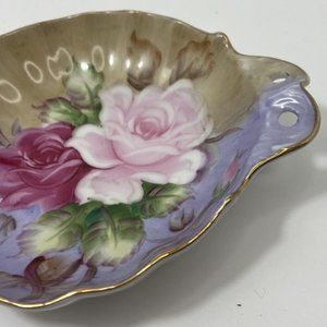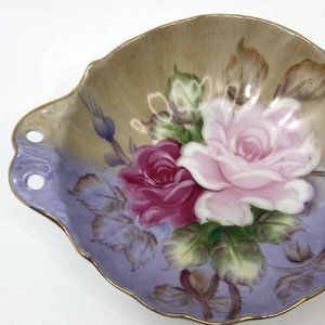 1940s Lefton Hand Painted Dual Tan Periwinkle Rose Bloom 6.5" Nut Bon Bon Dish