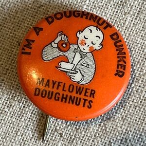 1940s MAYFLOWER DONUTS I'M A DOUGHNUT DUNKER 7/8" Celluloid Pinback