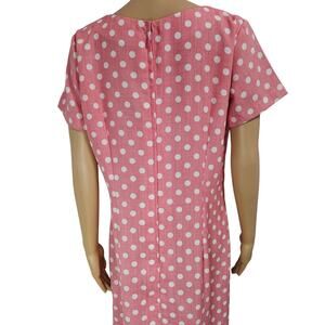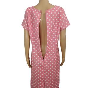 1940s Peach Polka Dot Rockabilly Short Sleeve Midi Back Long Zipper Dress SZ 14
