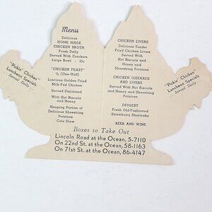 1940s Pickin' Chicken Menu Foldable Die cut Hen California Luncheon Liver Gizzard