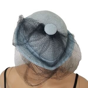 1940s Pointed Blue Hat with Long Black Veil Turned Up Brim Size 7 1/2 VINTAGE