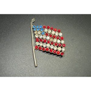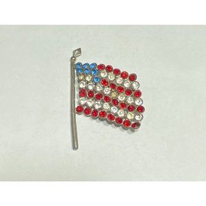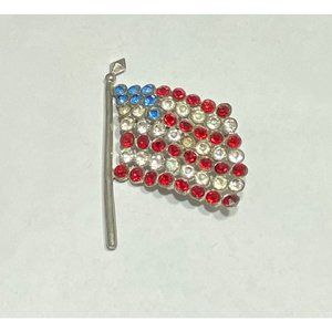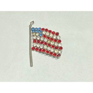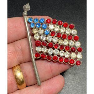 1940's Pot Metal USA American Flag Brooch Pin Multicolor Rhinestone Patriotic