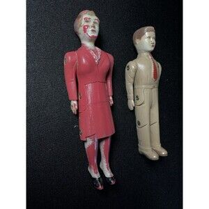 1940s RENWAL dollhouse dolls, vintage jointed dolls, hard plastic dollhouse mom dad, No 43 No 44 dolls, mid-century dollhouse figures, antique miniatures, 1:12 scale vintage dolls, Renwal hard plastic parents