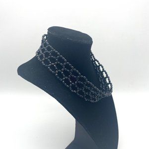 1940s Vintage Black Beaded Choker - Stretchy Necklace