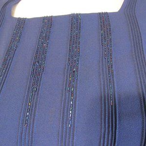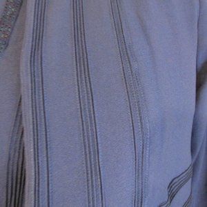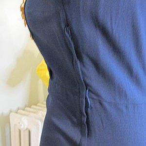 Beautiful vintage 40s dress, glass hand beaded detail, with matching jacket. Upper back and side zip as well. Belt is in fair condition, however shoulder pads are shot. Rare find for all 3 pcs. Shown on size 14 mannequin, a little darkening under the arms, but not really noticeable.