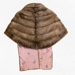 1940s Vintage Mink Fur Capelet Shrug Satin Lined Hollywood Glam Wrap Medium Fit
