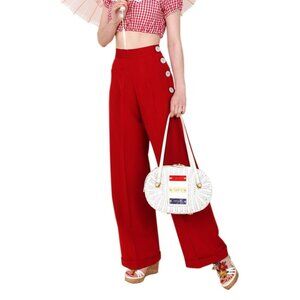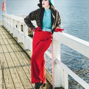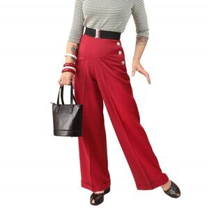 1940s Vintage Reproduction High Waisted Red Trousers w/Button detail