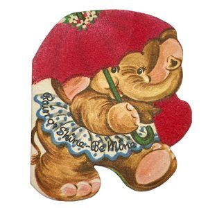 1940s Vintage Valentine Card Elephant with Umbrella Flocked Be Mine 3" Tall