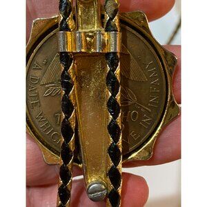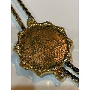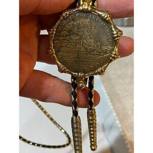 1941 Pearl Harbor Commemorative Bolo Tie Gold Tone Metal & Black Braided Cord