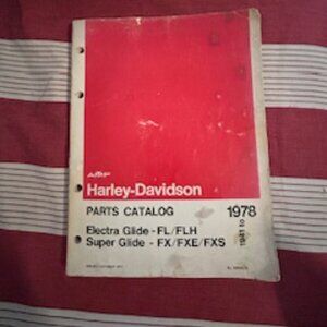 Used/Pre-Owned 1941-1978 AMF/Harley Davidson Parts Catalog for Electra Glide and Super Glide Issued Oct.1977. This is the complete catalog- NOT a PDF download. The pages are in good condition. No stains or missing pages - just usage wear and tear.