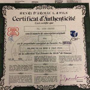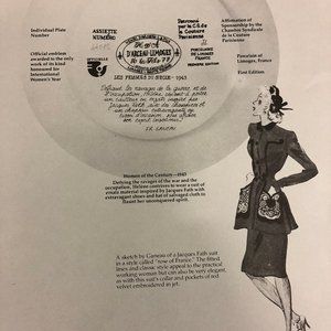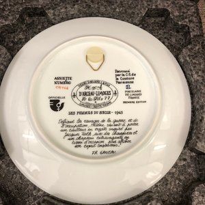 Each plate beautifully depicts a unique era & French woman of fashion ranging 1865 - 1965. They are decoratively scripted in French w/ each woman's name & fashion style plus artist's signature. They were manufactured in France and produced by D'Arceau Limoges in the 1970’s