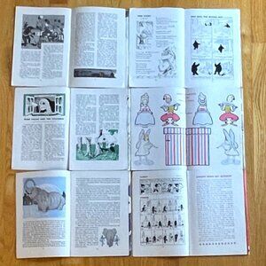 Vintage 1943 Jack & Jill Children's Magazines with wonderful children's stories, illustrations, educational articles, letters from children across the country, a mother's page and so much more. These magazines are very interesting. They provide historical insight to the family unit, our country and how the world at war was presented to the children of 1943. Overall, the interior pages are in remarkably good shape. There are some marks, worn edges and wear and a few pages are detached in two magazines but are still in place. Most covers show their age with fading and minor wear and tear but are fully intact. Two covers are in poor shape as they are disconnected from the interior and torn.