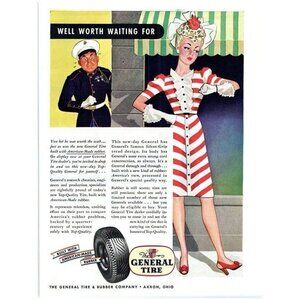 Here is your chance to own this original 1943 Print Ad General Tire & Rubber Akron Pretty Woman Worth Waiting For WWII!