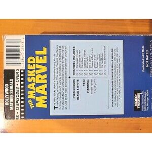 Experience the thrill of crime and adventure with "The Masked Marvel" VHS tape set. This box set includes 12 black and white episodes of the classic 1943 TV/Matinee series, featuring the iconic hero Tom Steele. The set is perfect for fans of action and investigation, and is rated G for all audiences.