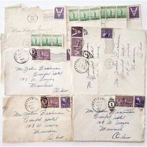 1943 WW2 Envelopes Stamps Military Ephemera Bundle Lot Of 10 Pcs Crafts E17