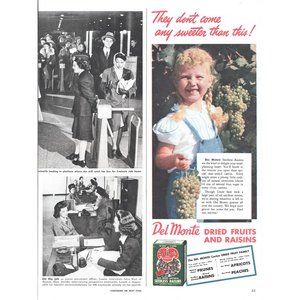 1944 Del Monte Raisins Vintage Print Ad Blonde Girl Pigtails Braids Wall Art