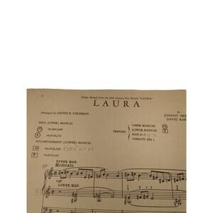 1945 Laura Sheet Music David Raksin Hammond and Pipe Organ Solos