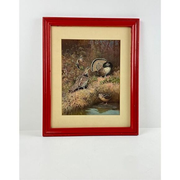 Preowned. Print is matted and framed in a 19.5 x 16in red wooden frame. Print itself measures 12.5 x 9.75in. Frame shows normal aging. See all photos for actual condition.