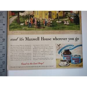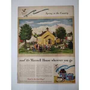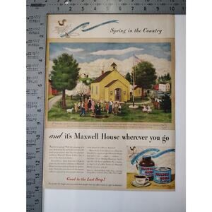 1946 Maxwell House Coffee Print Ad Yellow Schoolhouse Americana Ephemera
