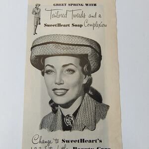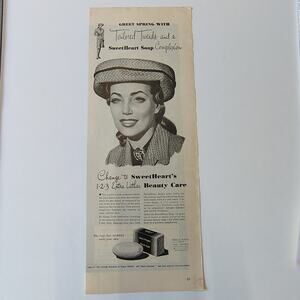 1946 SweetHeart Soap Print Ad MCM Woman in Hat Midcentury Beauty Care Routine