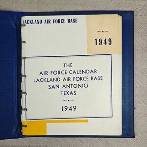 This calendar from 1949 provides a glimpse into the daily schedules and events at Lackland Air Force Base. It serves as a nostalgic keepsake for collectors and history enthusiasts interested in military history. The blue cover adds to its vintage appeal.