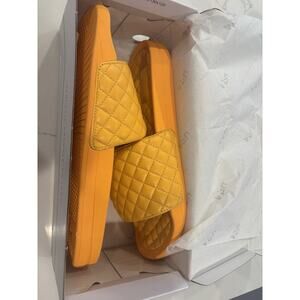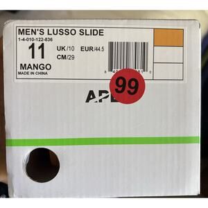 The $195 APL Athletic Propulsion Lab Lusso Slides in Men’s Size 11 in Mango Orange are brand new sandals designed for comfort and style. These slip-on slides feature a quilted design and a rubber outsole for durability. Perfect for summer, fall, and spring, these lightweight and breathable sandals are ideal for outdoor activities, urban living, and sports. The leather lining and insole provide added comfort, while the textile upper material adds a touch of style. Made in China, these slides are part of the Comfort Slide product line from APL.