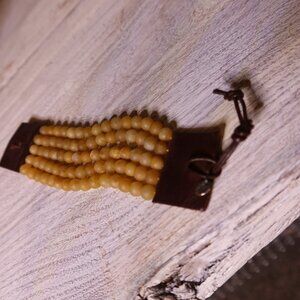 $195 Chan Luu 5 row yellow jade bracelet brown leather