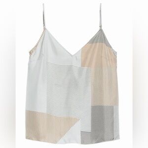 Elevate your style with this chic striped patchwork cami top. Perfect for casual outings or a night out, this top features a blend of cream, gray, and tan colors for a versatile look.