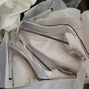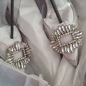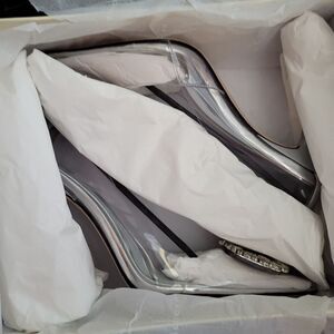 $195 GOOD AMERICAN CINDERELLA GLASS RHINESTONE SILVER CLEAR PUMPS HEELS 9 NEW