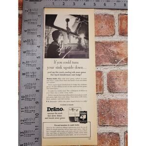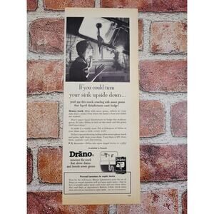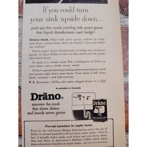 1950 Drano "If You Could Turn Your Sink Upside Down..." Scared Housewife Vtg Print Ad