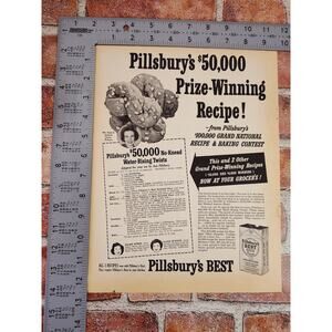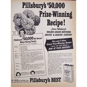 1950 Pillsbury Best Flour $50k Prize-Winning Recipe No-Knead Twists Vtg Print Ad