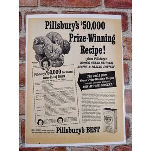 1950 Pillsbury's Best Flour $50k Prize-Winning Recipe No-Knead Twists Vtg Print Ad