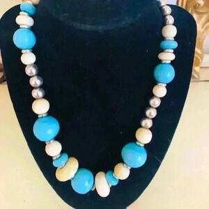 1950 S VINTAGE AQUA BLUE BEADS AND STERLING NECKLACE