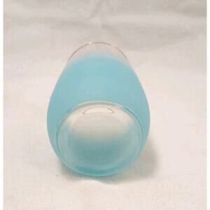 It features a frosted or satin finish in a vibrant turquoise blue color at the base, which fades upwards towards the clear glass, accented by a gold band around the lip of the glass.