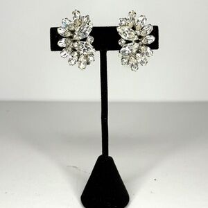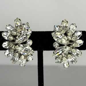 Antique 1960s, Albert Weiss, Crystal Clip On Earrings in Silver