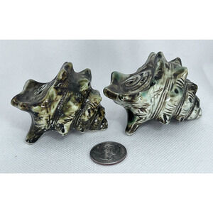 1950-60s Ceramic Spiral Conch Sea Shell Salt & Pepper Shakers, Japan Vintage