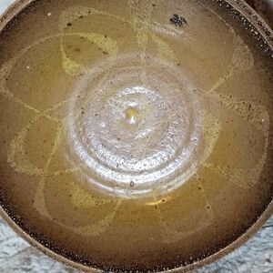 this is a handmade pottery bowl from 1950 signed by the maker. in great condition. it is handmade so it has imperfections that are to be expected. would be a beautiful centerpiece on any table. great for a serving dish during parties and get togethers .