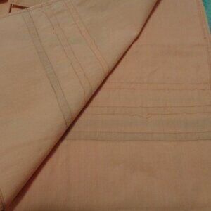 1950S VINTAGE PEACHY SMALL TABLECLOTH W A FEW STRIPES PLUS NAPKINS LOT