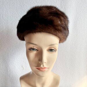 1950s 1960s Brown Mink Pillbox Style Hat Bonwit Teller