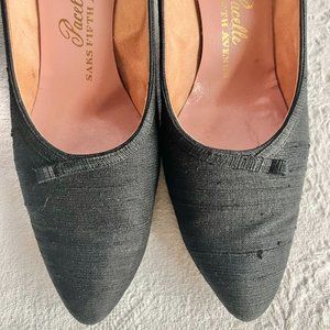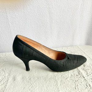 1950s 1960s Pacelle Saks Fifth Avenue Black Spike Heel Pumps 8AA Narrow