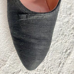 Textured cloth pumps with subtle stripe design & asymmetrical accent at front.