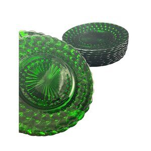 1950s Anchor Hocking Forest Green Bubble 9.25" Dinner Plate Made USA Set of 4