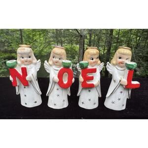 1950s Commodore Japan Heavenly Christmas Noel Angel Candle Holders Figurines