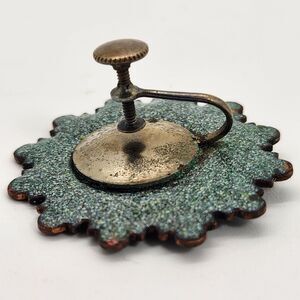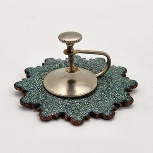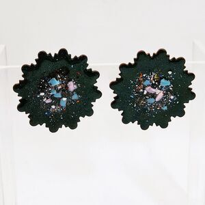 Abstract OOAK (one of a kind) modernist enamel on copper clip on earrings. Copper enamel is basically copper coated in a layer of glass. Very popular in the 1950s and that is likely when these were made. The color of these look different depending on what they are up against but looks most accurate (by my monitor settings) in the first photo. They are a deep forest green with glass frit in pastel tones. Great gift for the MCM or unique jewelry lover - there wont be another just like them. Ships in a new jewelry gift box, great for gifting or storage.