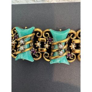 1950's Costume Vintage Selro Selini Turquiose Pearl Lucite Jewelry Bracelet