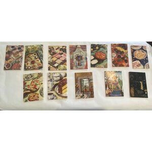 1950s Culinary Arts Institute Cookbooks Italian French Gourmet MCM Lot of 12 In Good Pre-owned Condition. There is brown discoloration to all the edges of the books, foxing. Inside pages are in good shape. There is wear to the binding on two of the books, 101 & 112. No marks or writing. No dark spots on inside pages. Beautiful Mid Century graphics. I am happy to send more photos if needed.